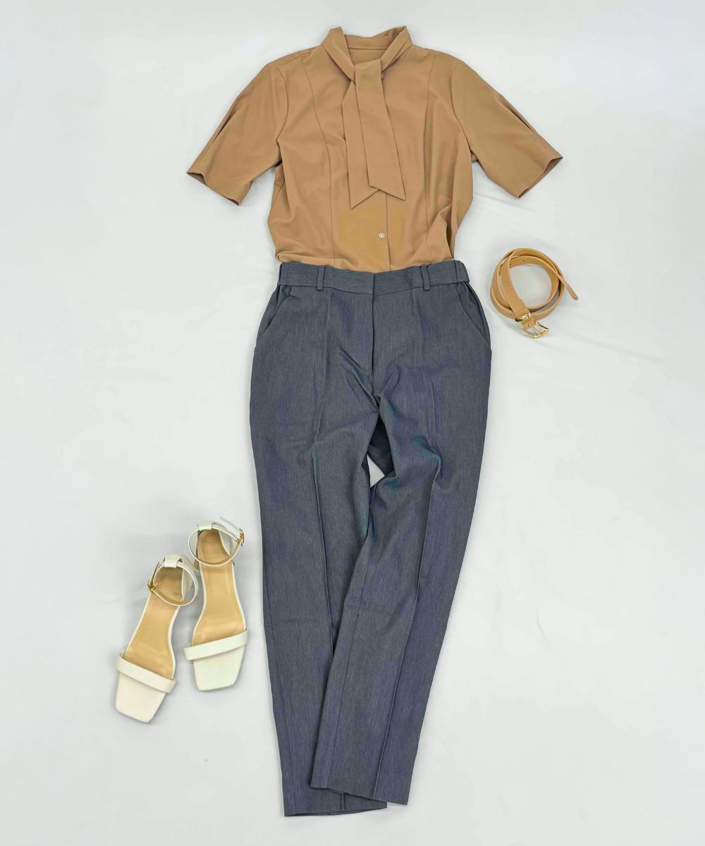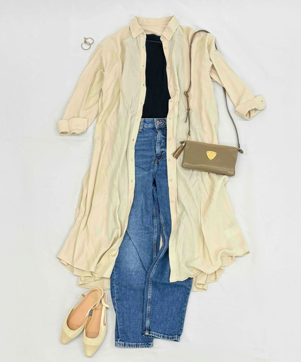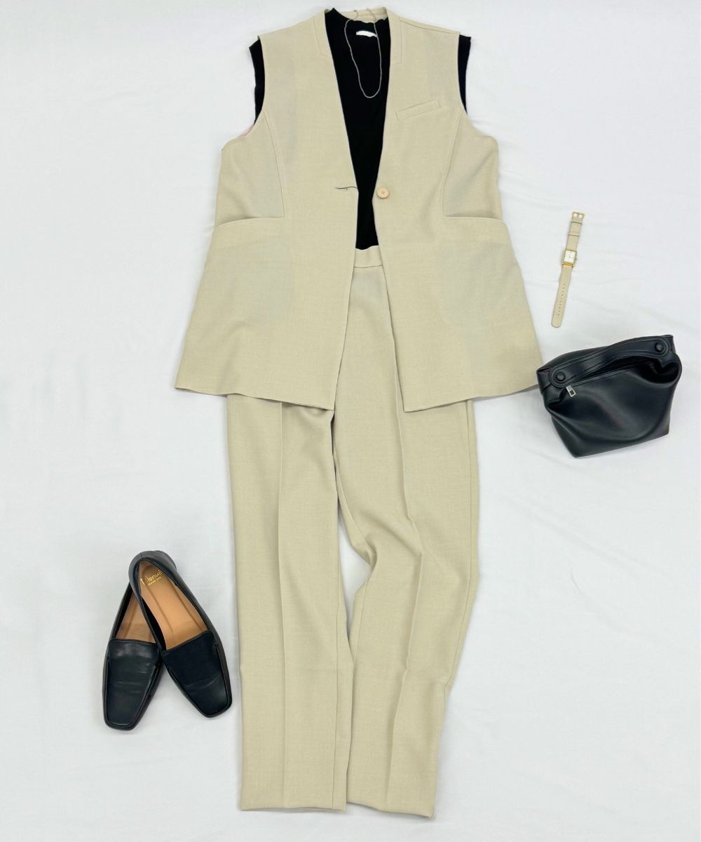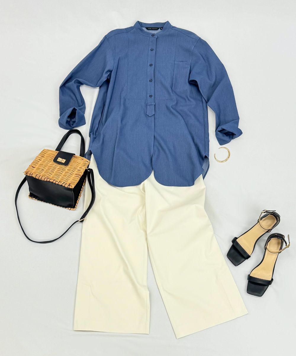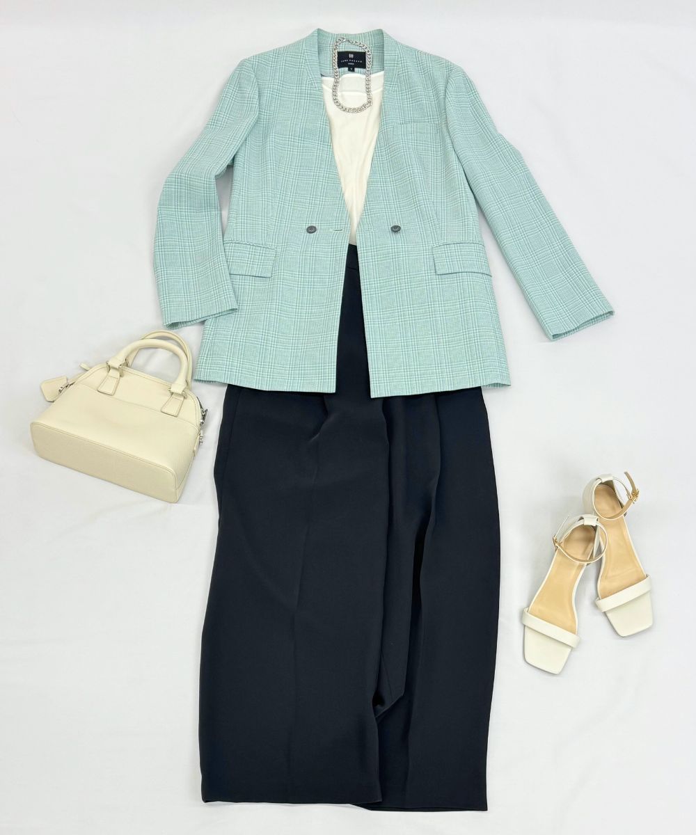 プロが教える! 骨格ナチュラル 通勤~オフの日コーデ5選 2025.08.22 so me!が悩める働くオトナ女子にお届けするコラム 【 働くオトナ女子のThink About Fashion 】 6月から3回にわたってお送りする「骨格スタイル別スタイリング」。 先月の骨格ウェーブさんに引き続き、第3回目の今月は、“骨格ナチュラル”さんに似合うアイテムやスタイリング5選をお届けします! CONTENTS STYLE 1 ポイントをおさえればブラウスも似合う◎ STYLE 2 ダブルジャケットはオーバーサイズが正解◎ STYLE 3 セットアップ&柔らか素材の着こなし術 STYLE 4 カジュアル素材で程よい抜け感 STYLE 5 バランスアップの秘訣は”長め” まとめ ライター紹介 - STYLE 1 - ポイントをおさえれば ブラウスも似合う◎ ブラウスは、女性らしい雰囲気を演出できる便利なアイテム。 でも実は、中性的な体つきが特徴の骨格ナチュラルさんにとっては、少し苦手に感じやすいアイテムでもあります。 「どんなブラウスを選べば、すっきり見えるの?」 「フェミニンすぎるのはちょっと…」 と悩む骨格ナチュラルさんも多いのではないでしょうか。 そんな時に意識したいのが、 「ハリと厚みのある素材」 「首が詰まったデザイン」 「オーバーサイズ」 という3つのポイント。 とろみのある素材や、体に沿うタイトなデザインは、骨格ナチュラルさんの本来のスタイリッシュさをかえって弱めてしまうことがあります。 代わりに、リネンやコットンなど少し硬さや厚みのある生地を選ぶと、骨やフレームの美しさを活かしながらバランスよく着こなせます。 また、首元はバンドカラーやスタンドカラーなど詰まったデザインを選ぶことで、上半身がすっきりとまとまり、シャープな印象に。 さらに、オーバーサイズやドロップショルダーなどゆったりめのシルエットは、骨格ナチュラルさんのしっかりした肩幅やフレームをカバーしつつ、こなれ感をプラスしてくれます。 特におすすめなのは、大きめシルエットのバンドカラーブラウス。 メンズライクな雰囲気と女性らしさがほどよくミックスされ、魅力をぐっと引き立ててくれます♪ - STYLE 2 - ダブルジャケットは オーバーサイズが正解◎ ジャケットはコーディネートを引き締めてくれる頼れるアイテム。 選び方を少し工夫することで、よりスタイルアップして見せることができます。 骨格ナチュラルさんにおすすめなのは、シングルジャケットよりもダブルジャケット。 ダブルのデザインは前合わせ部分に立体感が出るので、骨格ナチュラルさん特有のしっかりとしたフレームや肩幅を自然にカバーし、バランスよく見せてくれます。 さらに、少しオーバーサイズ気味のシルエットを選ぶのもポイント。 肩まわりや骨格のラインをほどよく隠しつつ、リラックス感と抜け感のある、おしゃれな印象を演出してくれます。 ジャケットの中に合わせるインナーは、無地やプレーンなデザインなどシンプルなものがベスト。 全体がすっきりとまとまり、洗練された雰囲気になります。 シンプルすぎて物足りなく感じるときは、大ぶりなネックレスなどのアクセサリーで鎖骨まわりをカバーしてあげると、華やかさもプラスされてバランスのよい着こなしになりますよ。 - STYLE 3 - セットアップ&柔らか素材の着こなし術 セットアップやきちんと感のあるスタイルを取り入れるときは、少し工夫するとぐっと垢抜けた印象になります。 たとえば、ブラックやネイビーなど定番カラーのセットアップは、きっちりしすぎて「かしこまりすぎかな?」と感じる方も多いかもしれません。 そんなときは、ベージュやグレーなど、少しカジュアルで柔らかい印象のカラーを選ぶのがおすすめです。 作り込みすぎない自然体の雰囲気が、ナチュラルさん本来の魅力を引き立ててくれます。 また、トレンドのシアー素材や柔らかな素材は、実はナチュラルさんにとって少し苦手なアイテム。 一枚で着るとフレームの大きさが強調されやすいのですが、ジャケットやカーディガンのインナーとして取り入れることで、程よく中和されておしゃれに着こなせます。 苦手なアイテムは着こなしで「似合わせる」工夫が大切。 ただトレンドを取り入れるのではなく、骨格の特徴を活かしながら自分らしい着こなしを楽しむことで、こなれ感のある洗練スタイルが完成します。 - STYLE 4 - カジュアル素材でほどよい抜け感 ラフで作り込みすぎないスタイリングは、程よいゆるさや抜け感があり、骨格ナチュラルさんにとてもよく似合います。 ポイントは、カジュアルな素材との相性が抜群なこと。 デニムやリネン、コットンなど、表情のある素材を自然に着こなすことで、ぐっとおしゃれ感が増して見えます。 特にデニム素材は、骨格ナチュラルさんの得意アイテムですが、あまりラフに寄せすぎるとオフィススタイルには不向きで、子どもっぽく見えてしまうことも。 そんなときは、生地表面がなめらかできれいめなデニム調の素材を選ぶのがおすすめ。 大人っぽさを
